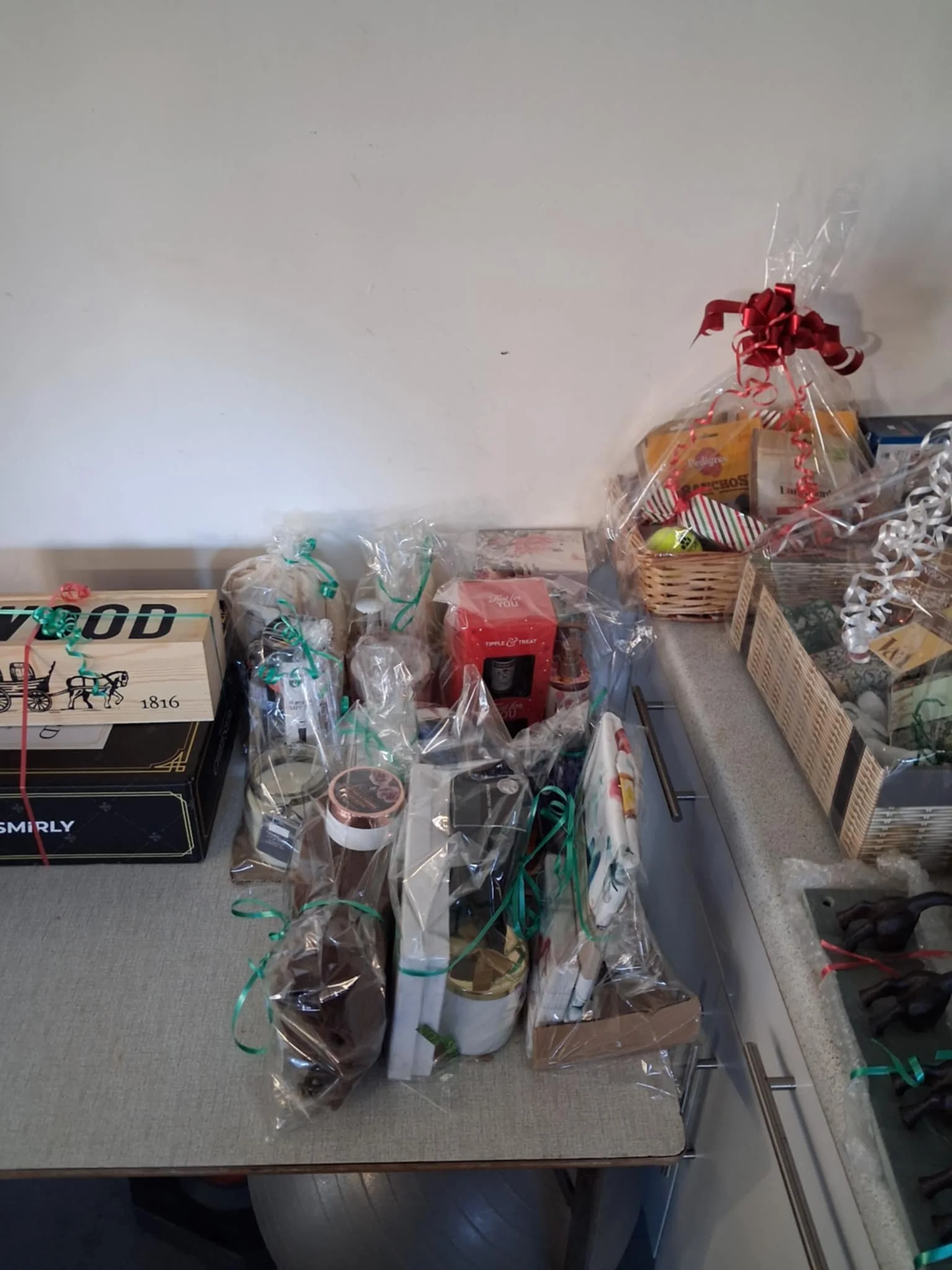 Prizes galore (32 sets of prizes sorted and wrapped ready for the raffle)